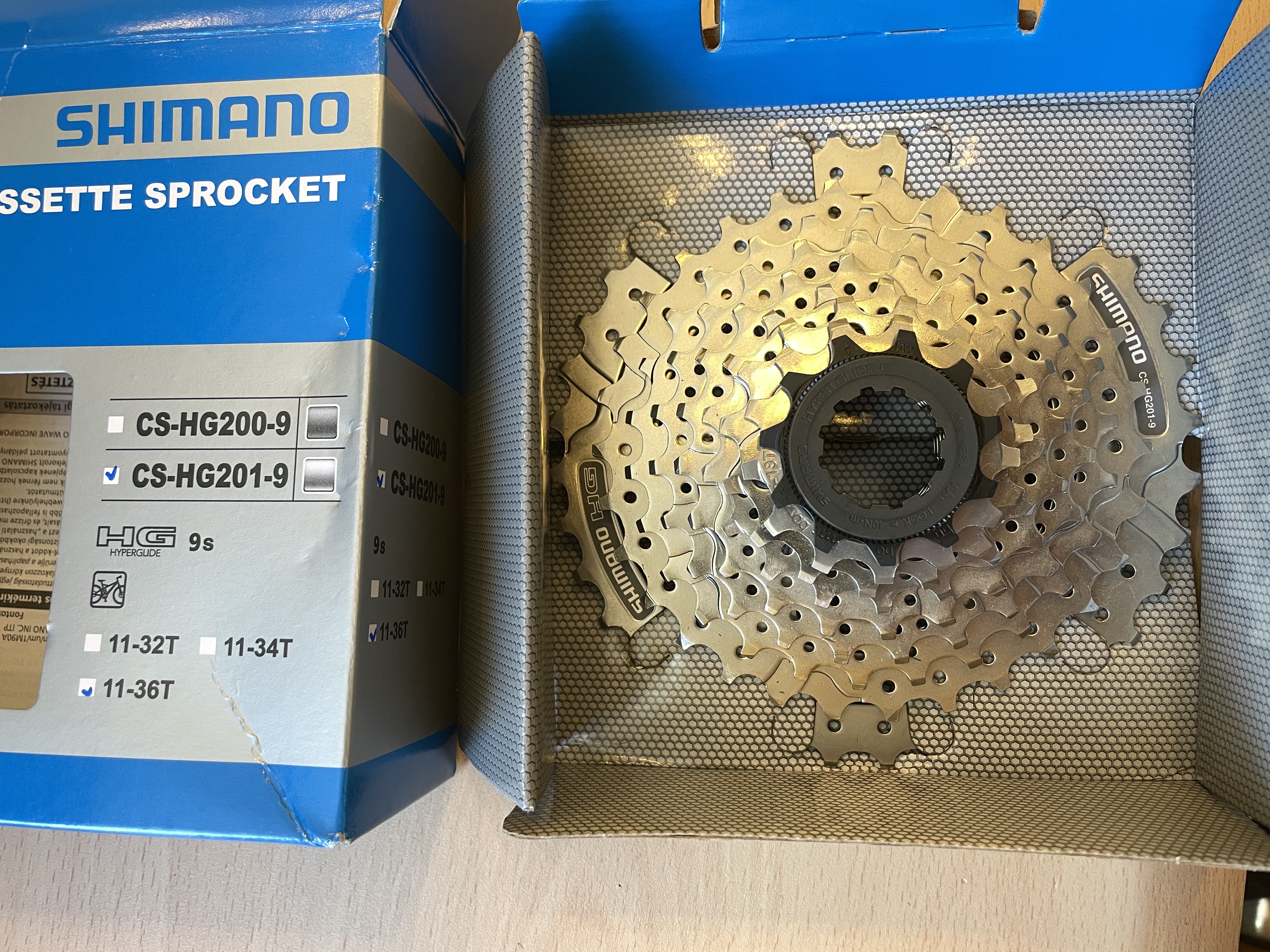 Кассеты SHIMANO ALIVIO HG201, 9 скоростей, 11-36 и 11-34 пришли быстро и бесплатно СДЭКом. 11-36 уже установил и опробовал в двух однодневных велопоходах 200+ км, асфальт- грунт, всё отлично, переключение передач чёткое. Покупкой доволен, спасибо!